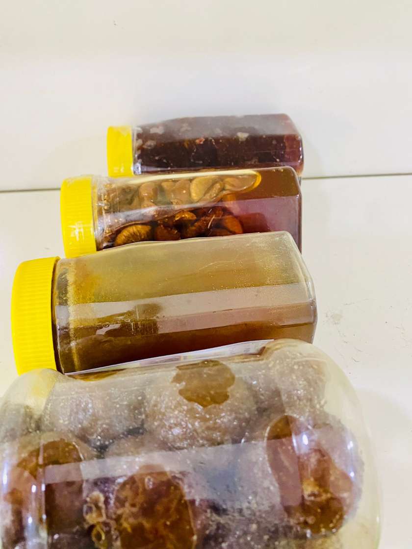 மகரந்தம் நீக்கப்படாத கொம்புத்தேன் + நெல்லி + அத்தி + குல்கந்து